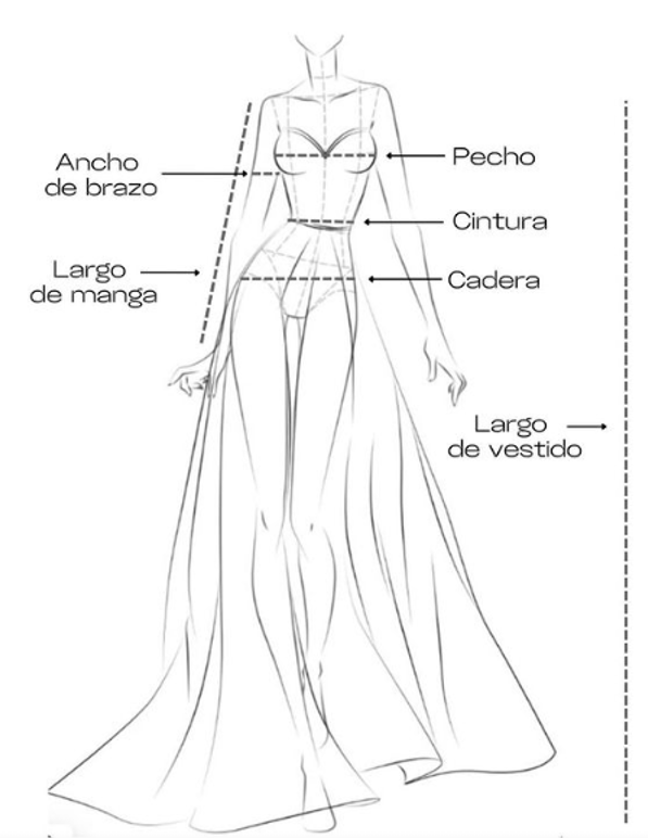 Siempre indicamos las medidas de cada vestido en la descripción del producto. Si tienes dudas sobre cómo tomar tus medidas o necesitas más información, no dudes en contactarnos por mensaje directo en Instagram.